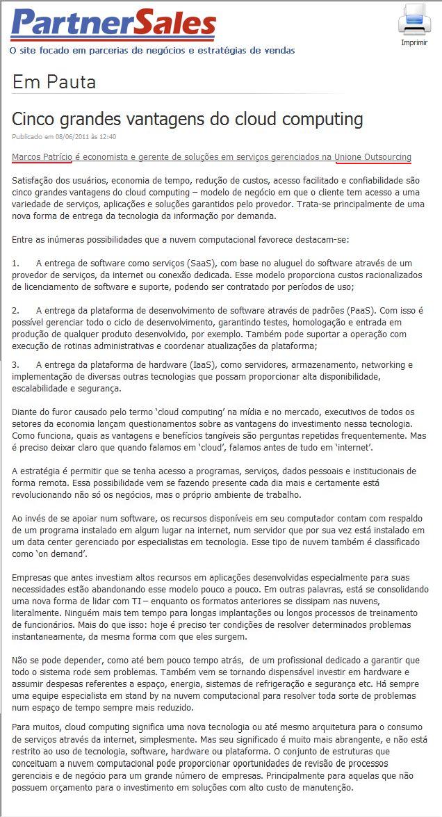 PARTNER SALES - Cinco grandes vantagens do Cloud Computing