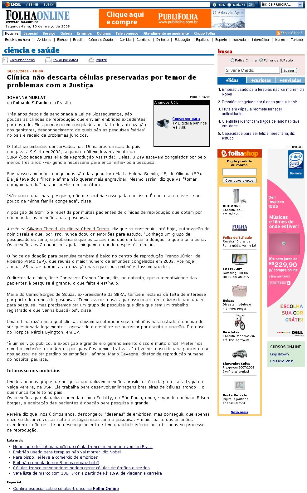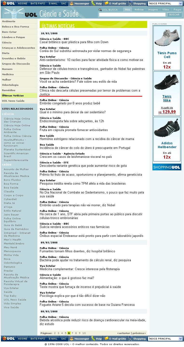 Portal UOL (Ciência & Saúde) - Clínica Chedid Grieco