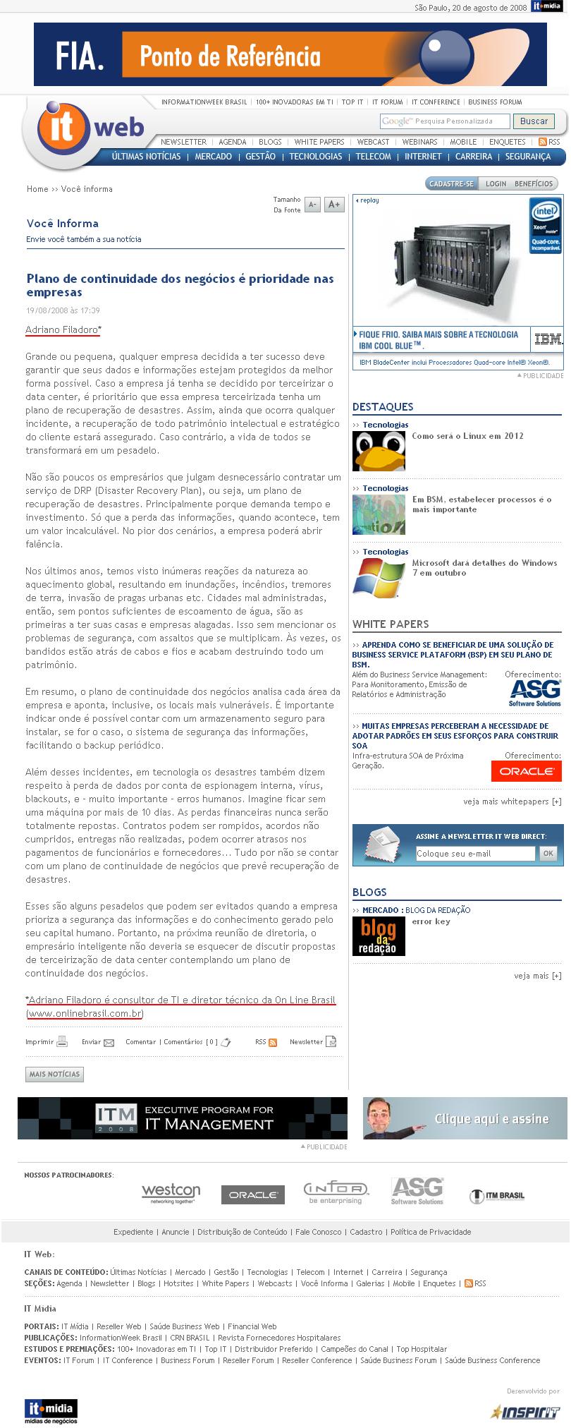 IT Web - Plano de continuidade dos negócios é prioridade nas empresas
