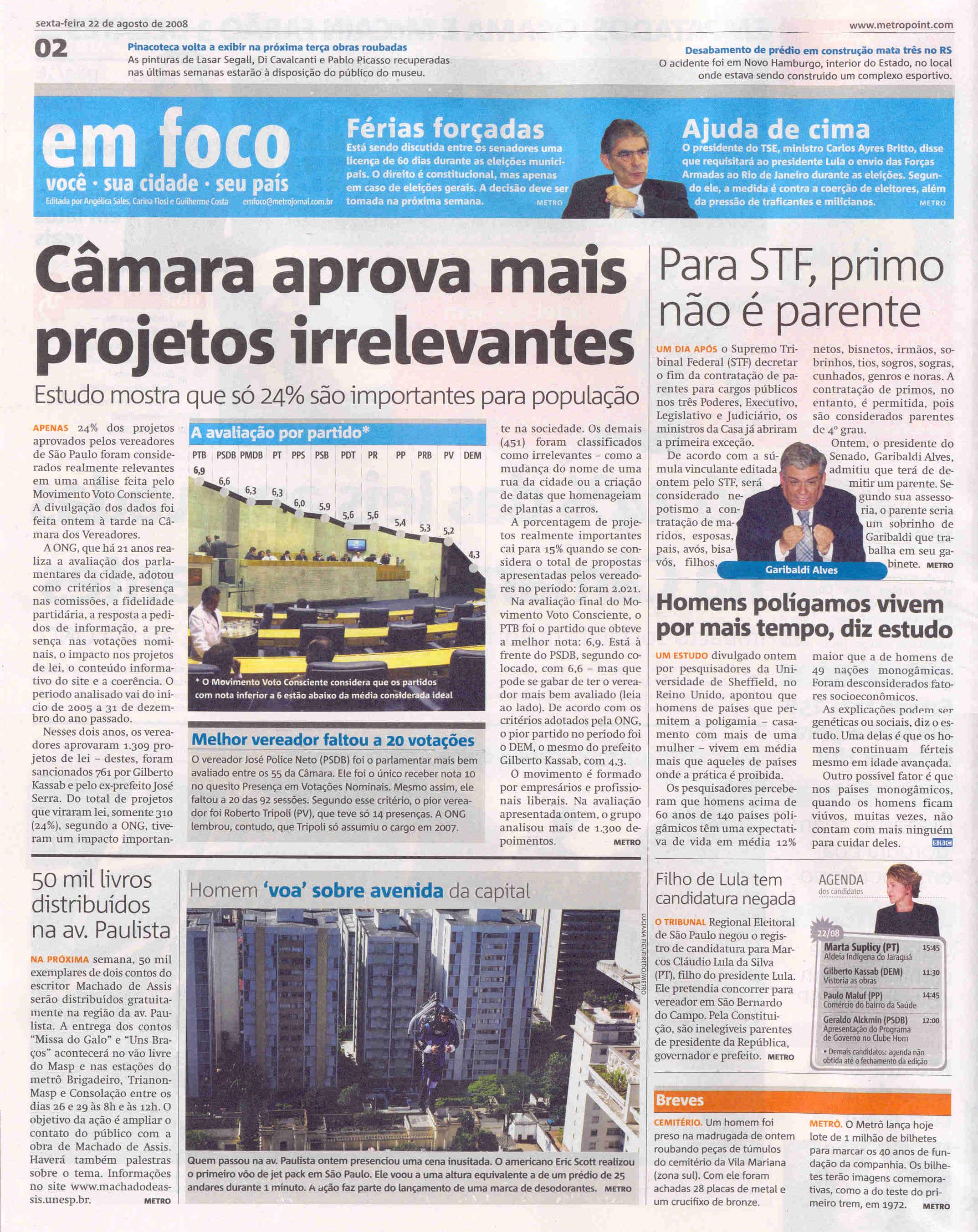 Jornal Metro (22 Ago) - Só 24% das leis aprovadas na Câmara são relevantes