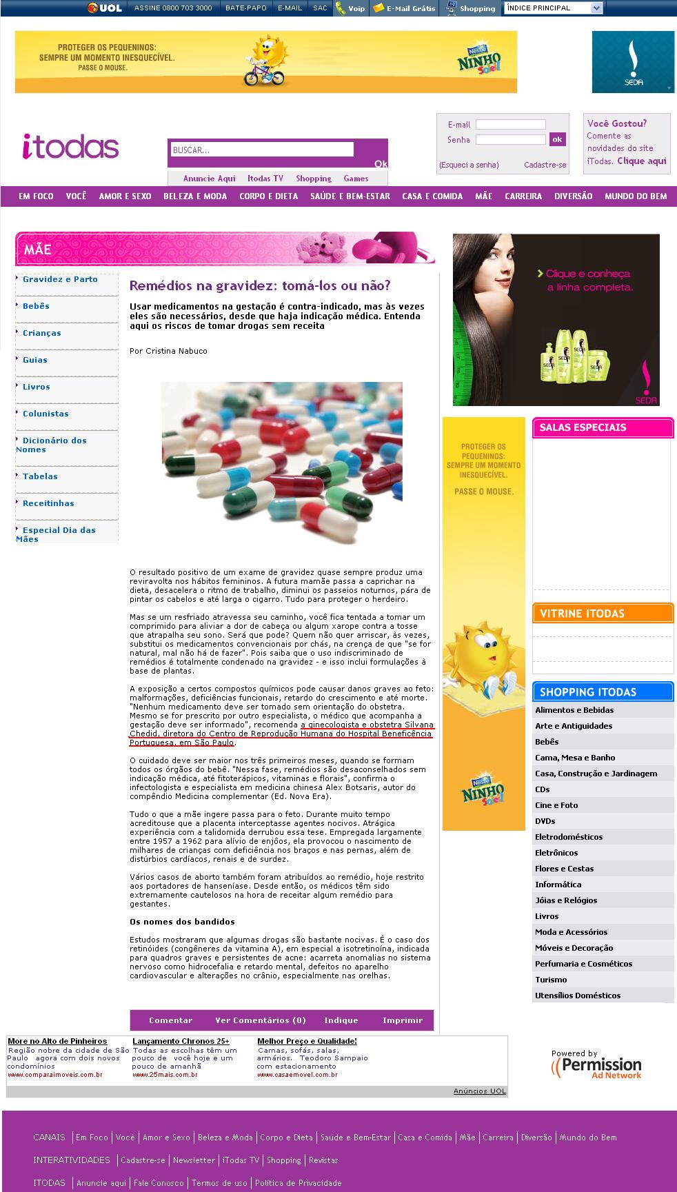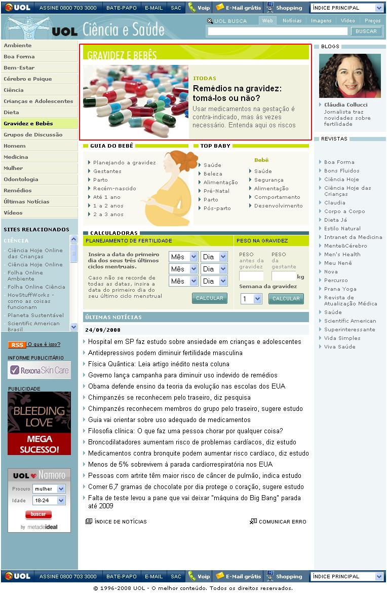 Portal UOL (Ciência & Saúde) - Remédios na gravidez: tomá-los ou não?
