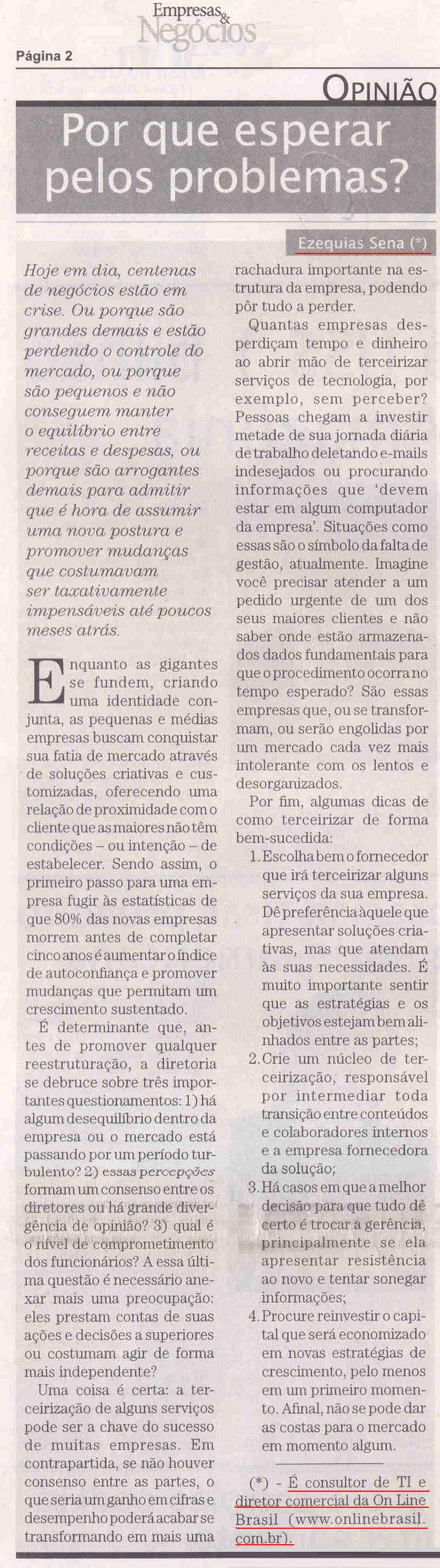 Jornal Empresas & Negócios (17 Set) - Por que esperar pelos problemas?