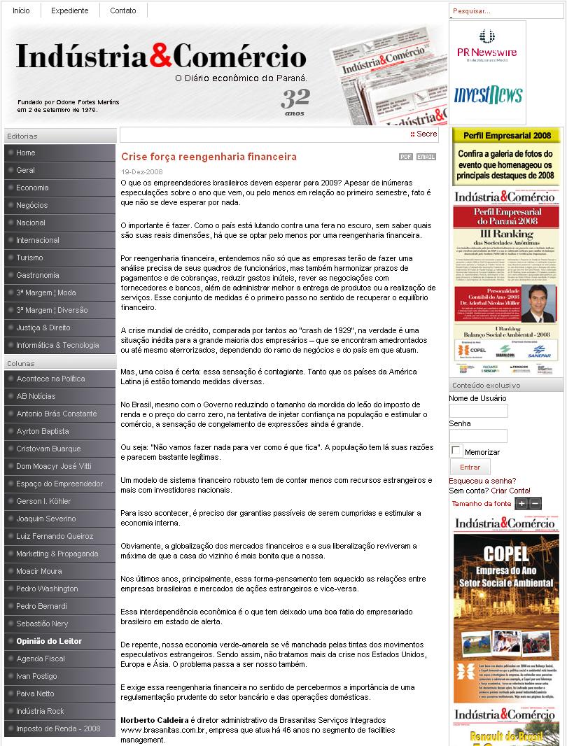 Jornal Indústria & Comércio (19 Dez) - Crise força reengenharia financeira