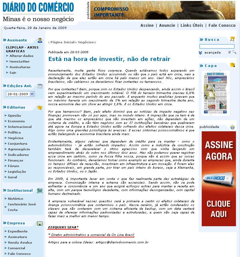 Diário do Comércio - MG (28 Jan) - Está na hora de investir, não de retrair