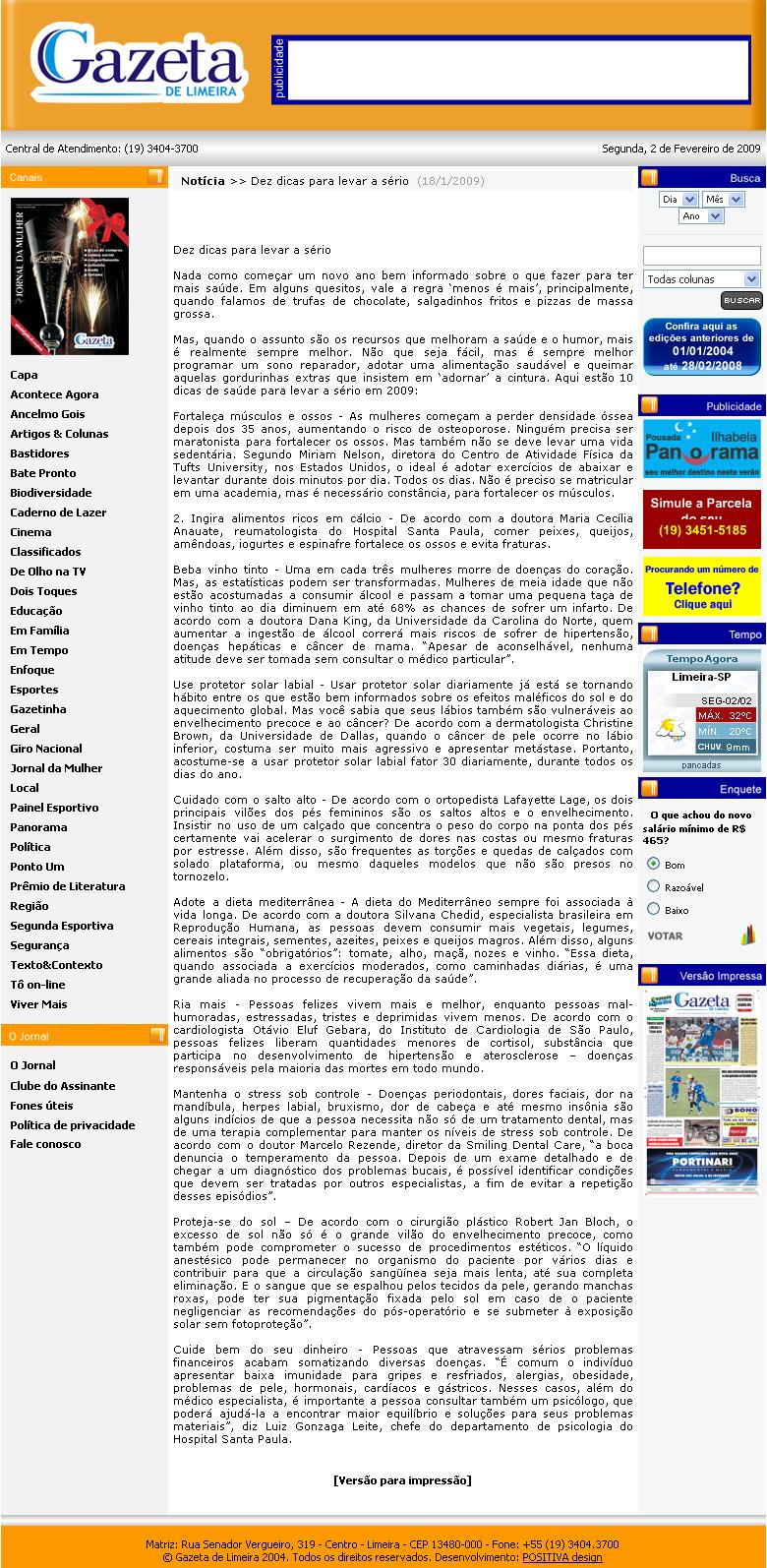 Gazeta de Limeira (18 Jan) - Dez dicas para levar a sério