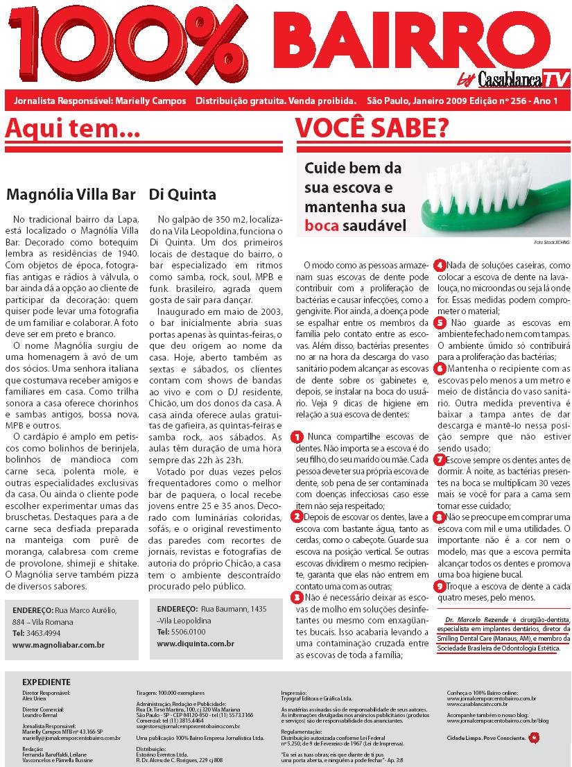 Jornal 100% Bairro (Jan) - Cuide bem da sua escova e mantenha sua boca saudável