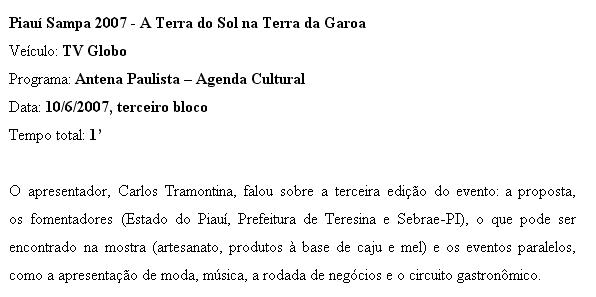 TV Globo - Antena Paulista - Piauí Sampa 2007