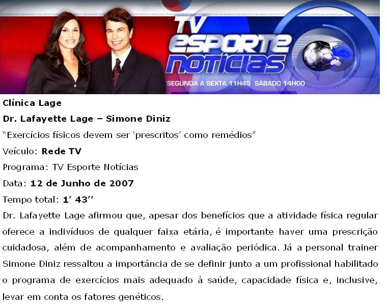TV Esporte Notícias (Rede TV) - Dr. Lafayette Lage