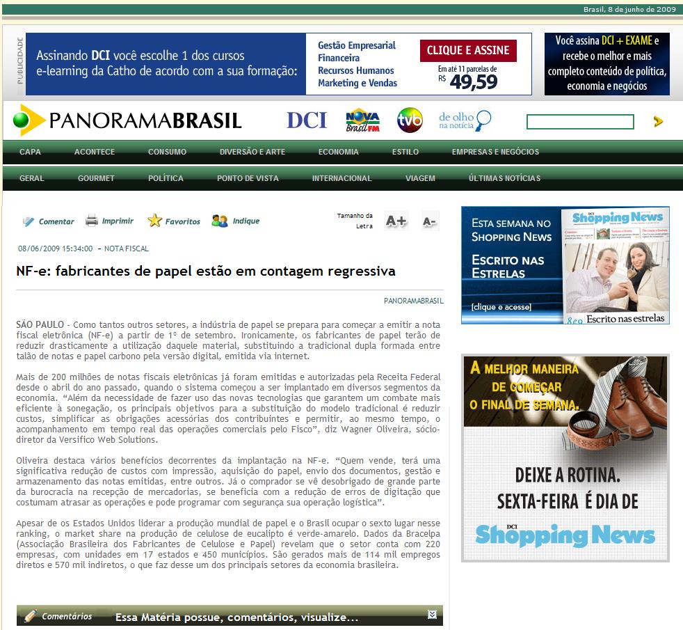 Clipping Agência de Notícias Panorama Brasil (DCI) - NF-e: fabricantes de papel estão em contagem regressiva 09/06/2009