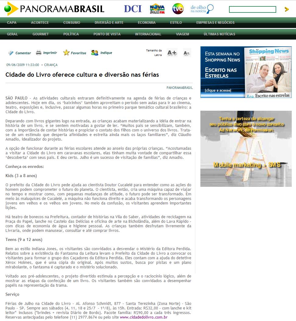 Clipping Agência de Notícias Panorama Brasil (DCI) - Cidade do Livro oferece cultura e diversão nas férias 09/06/2009