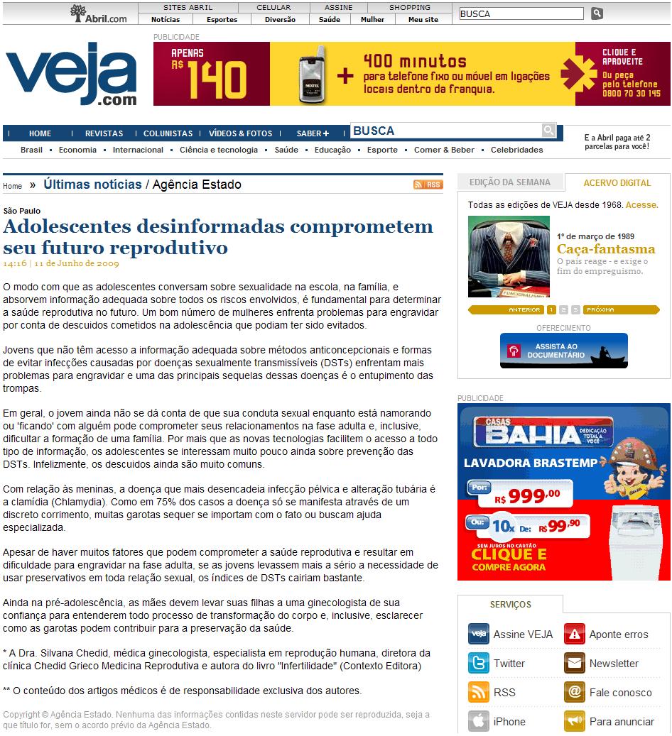 Portal VEJA - Adolescentes desinformadas comprometem seu futuro reprodutivo