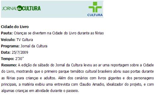 TV Cultura (Jornal da Cultura) - Cidade do Livro