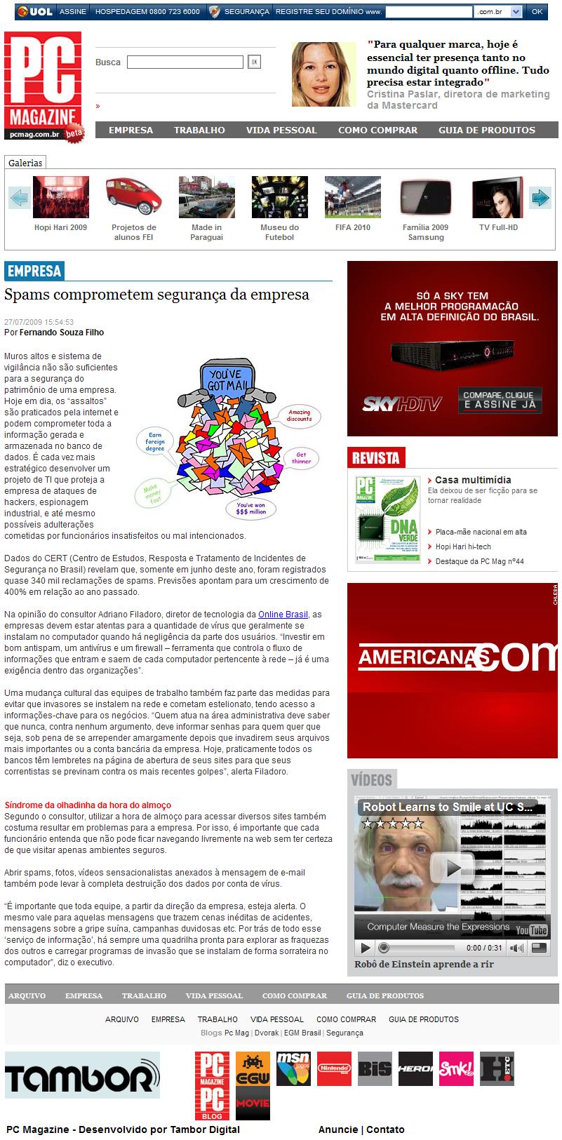 PC Magazine (UOL) - Spams comprometem segurança da empresa