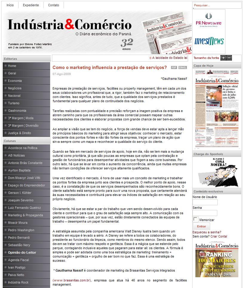 Clipping Jornal Indústria & Comércio (7 Ago) - Como o marketing influencia a prestação de serviços? 10/08/2009