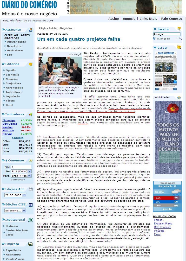 Diário do Comércio/MG (21 Ago) - Um em cada quatro projetos falha