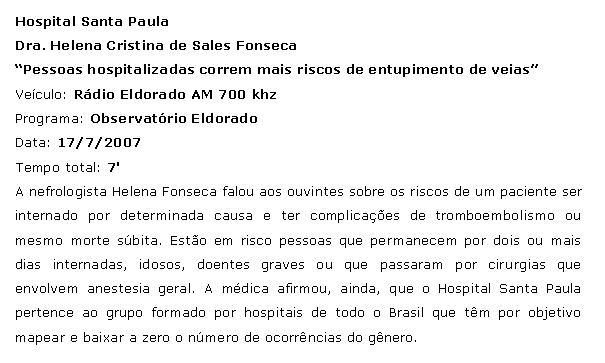 Rádio Eldorado AM 700 khz - Hospital Santa Paula