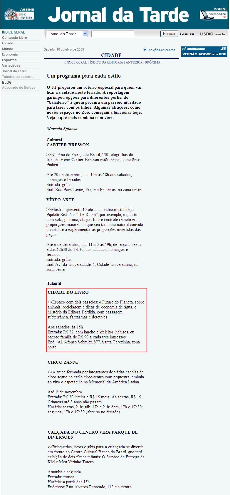 Jornal da Tarde (10 Out) - Um programa para cada estilo