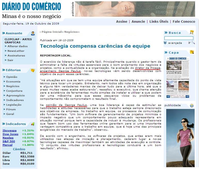 Diário do Comércio/MG (16 Out) - Tecnologia compensa carências de equipe