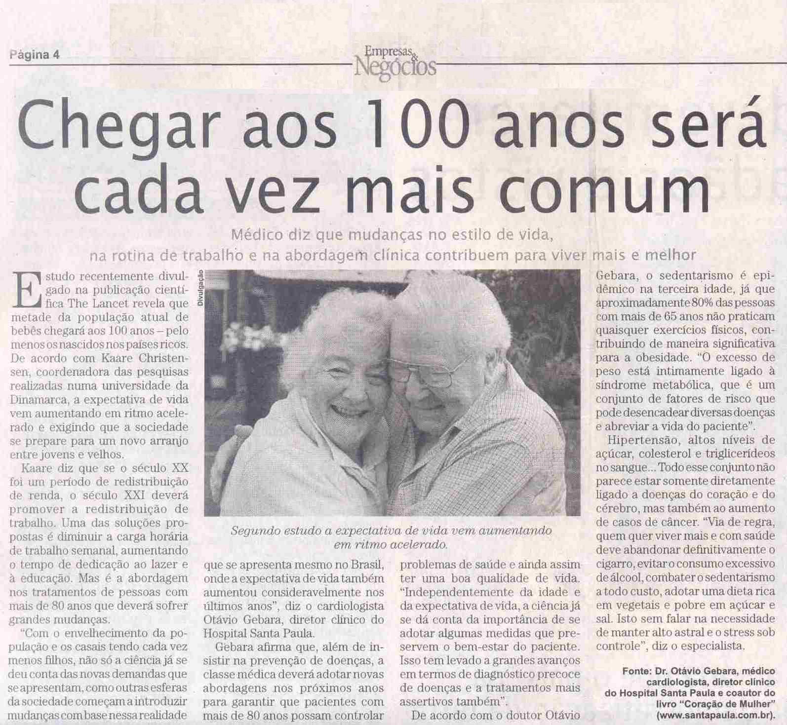 Clipping Jornal Empresas & Negócios (27 Out) - Chegar aos 100 anos será cada vez mais comum 30/10/2009