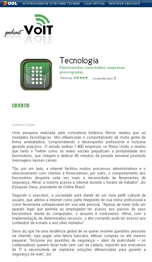 Portal UOL (Tecnologia) - Funcionários conectados: empresas preocupadas