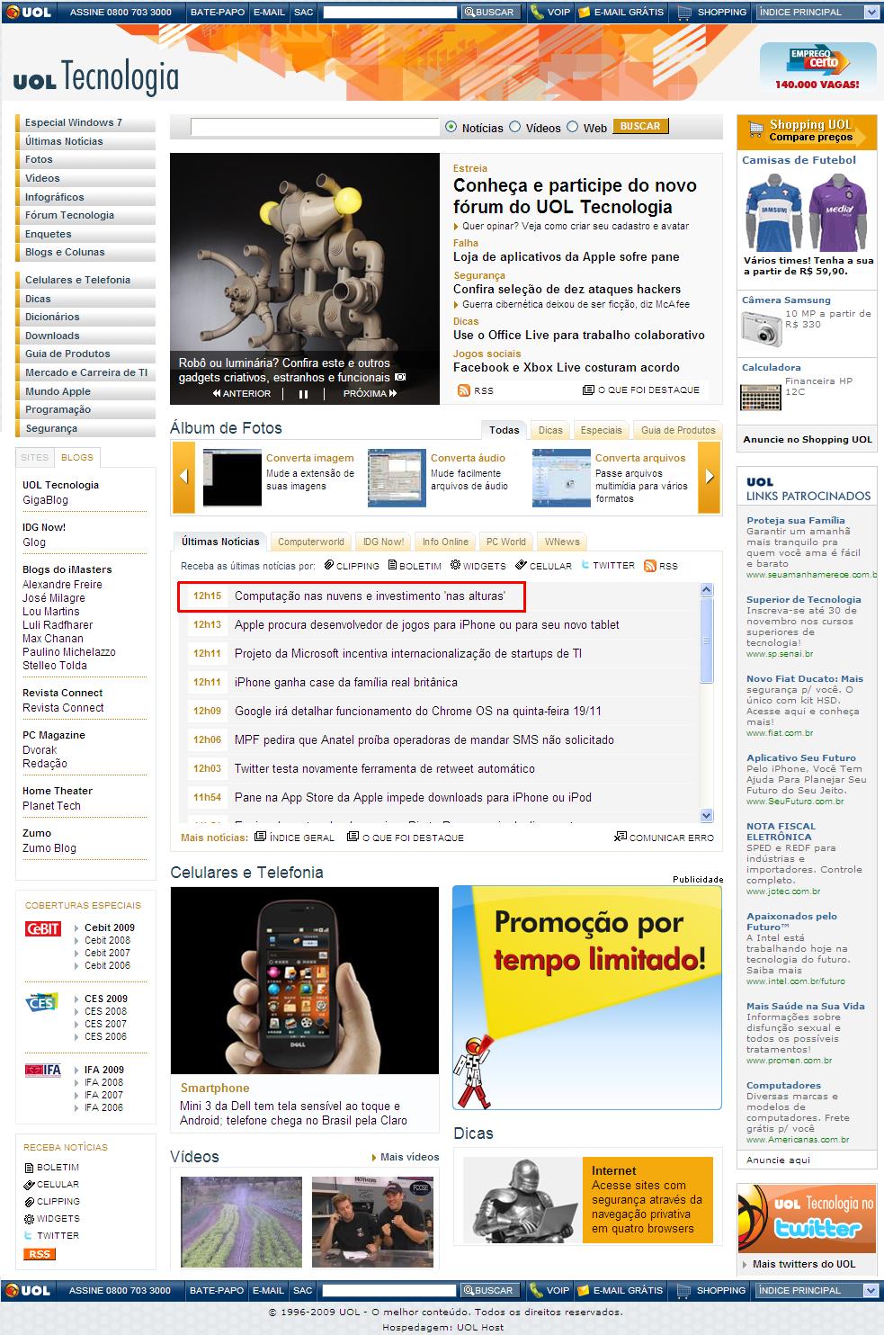 Portal UOL (Tecnologia) - Computação nas nuvens e investimento nas alturas
