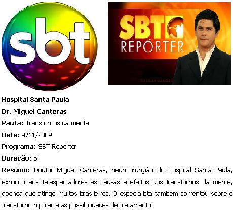 SBT (SBT Repórter) - Dr. Miguel Canteras/Hospital Santa Paula