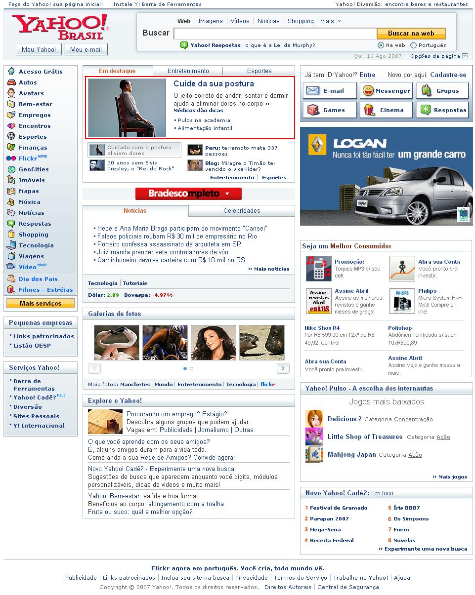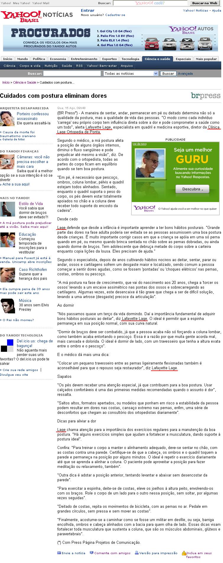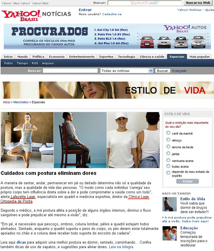 Portal Yahoo (Chamada de capa + Matéria) - Clínica Lage Ortopedia de Ponta
