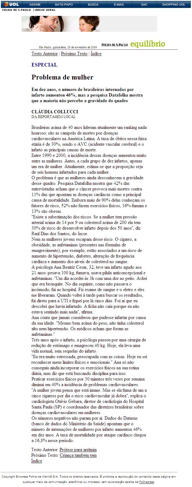 FOLHA DE S.PAULO (26 Nov) - Problema de mulher
