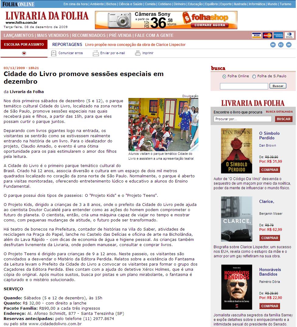 FOLHA ONLINE - Cidade do Livro promove sessões especiais em dezembro