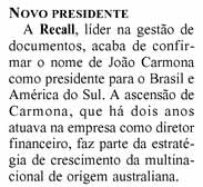 Gazeta Mercantil (22/8) - Recall do Brasil