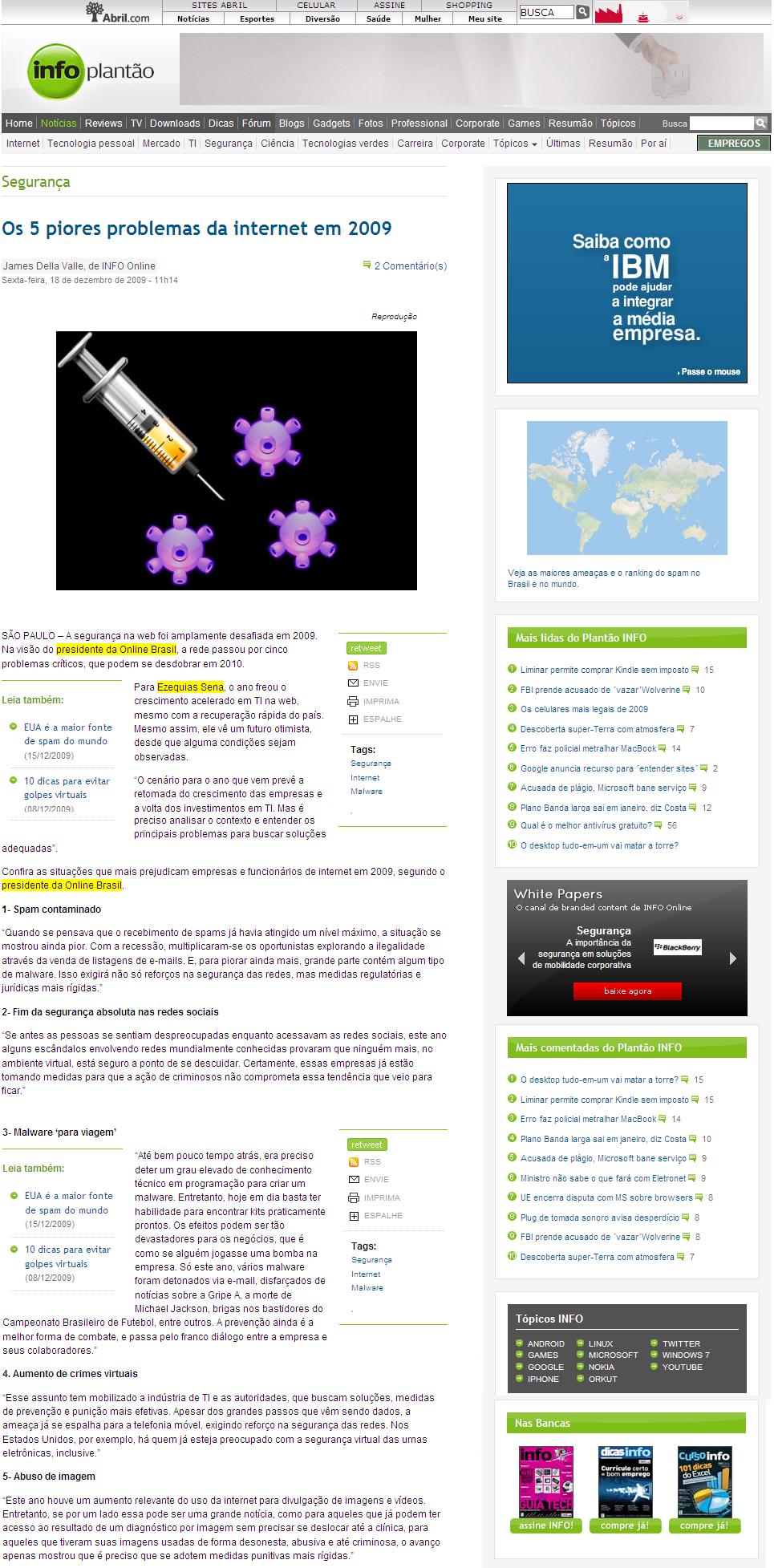 PORTAL INFO (ED. ABRIL) - Os 5 piores problemas da internet em 2009