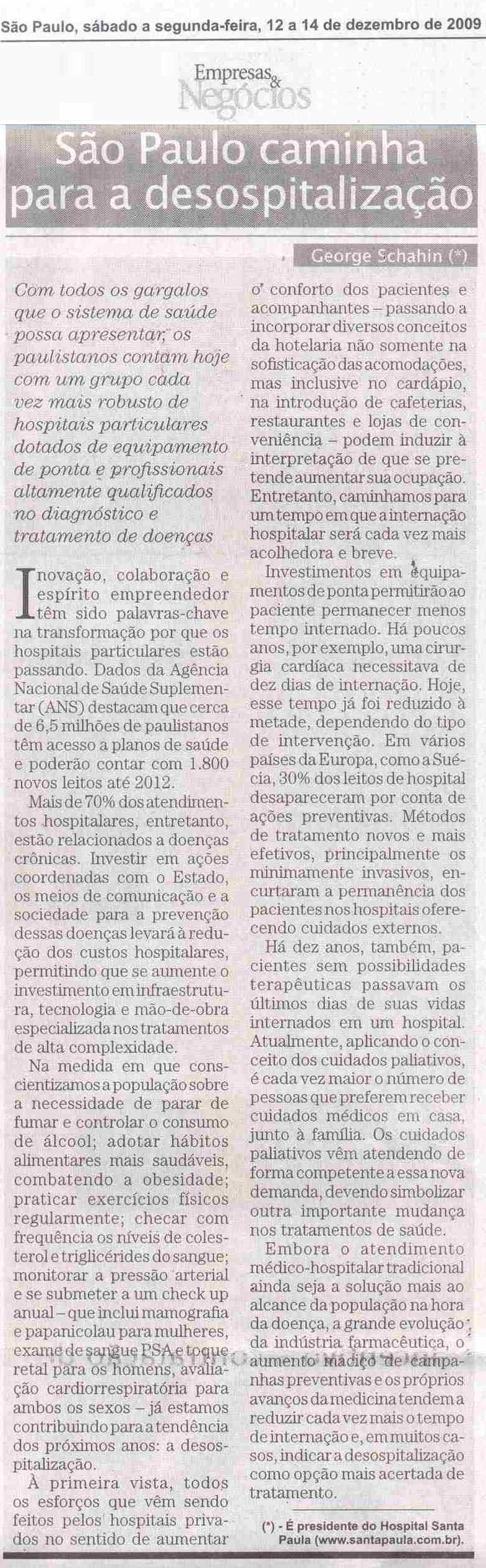 JORNAL EMPRESAS & NEGÓCIOS (14 Dez) - São Paulo caminha para a desospitalização