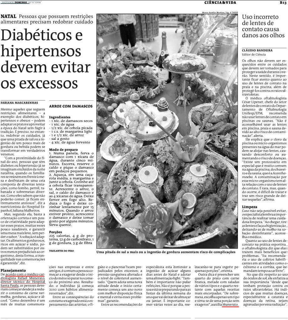 Clipping JORNAL A TARDE (SALVADOR/BA) (18 Dez) - Diabéticos e hipertensos devem evitar os excessos 22/12/2009