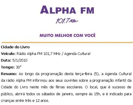 RÁDIO ALPHA FM 101,7 MHz - Cidade do Livro