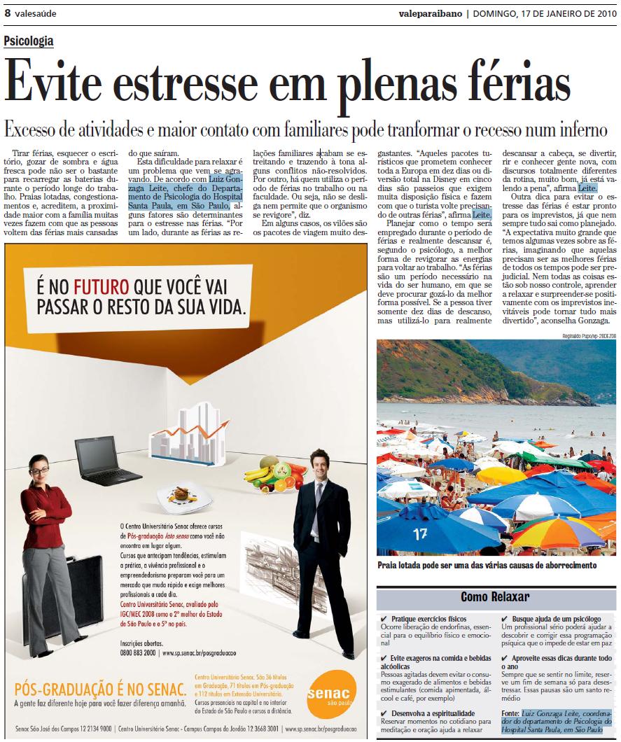 VALEPARAIBANO (VALE DO PARAÍBA/SP) (17 Jan) - Evite estresse em plenas férias