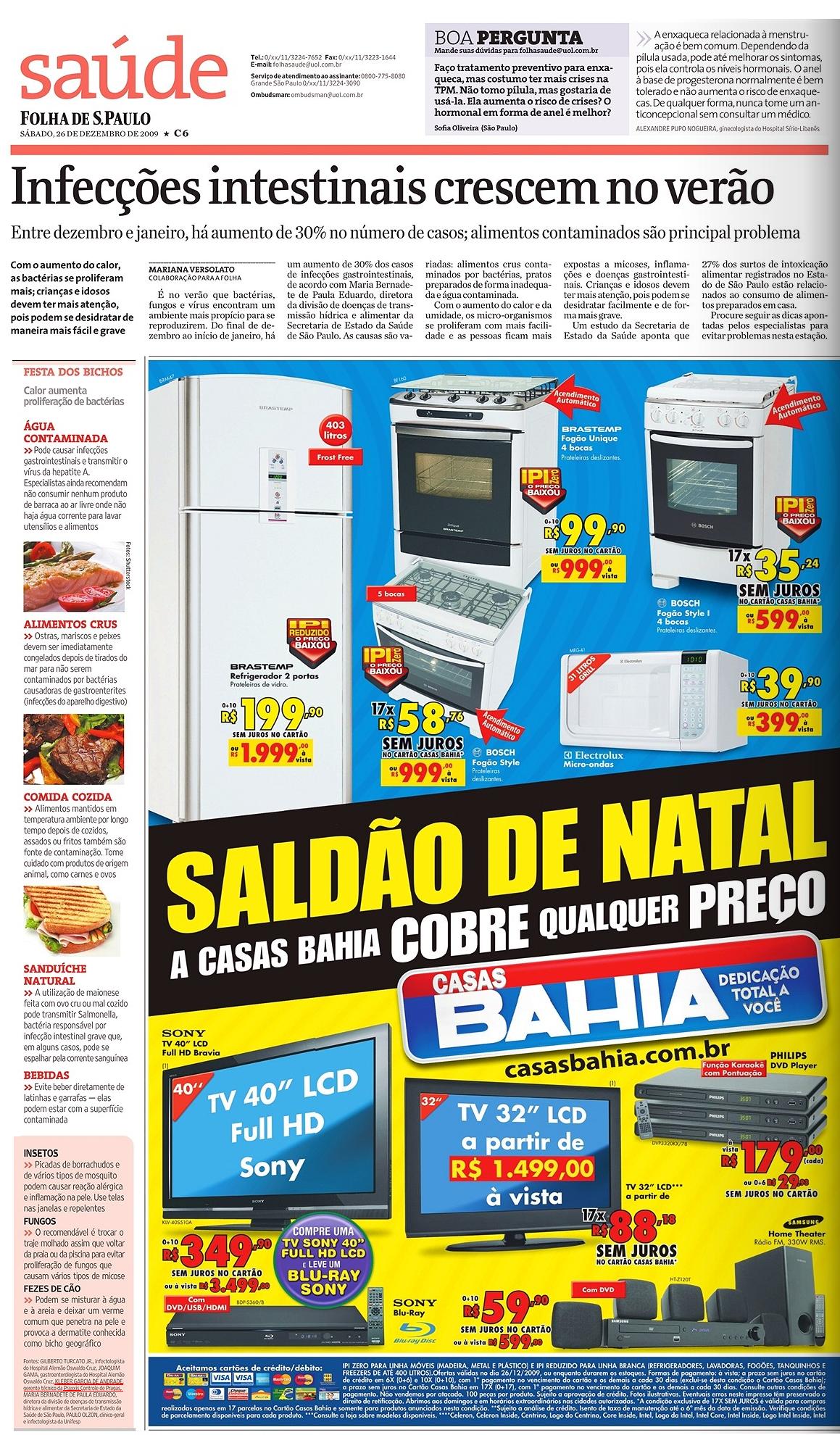 FOLHA DE S.PAULO (26 Dez) - Infecções intestinais crescem no verão