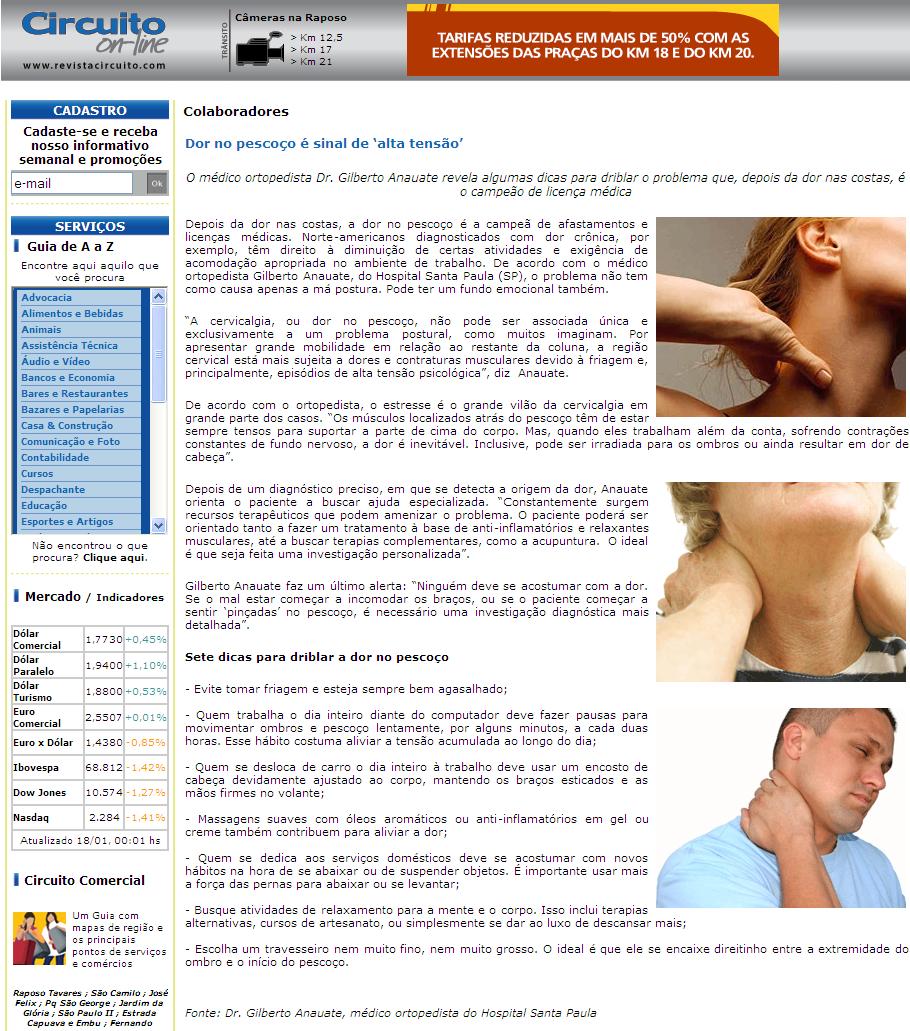 REVISTA CIRCUITO - Dor no pescoço é sinal de 'alta tensão'