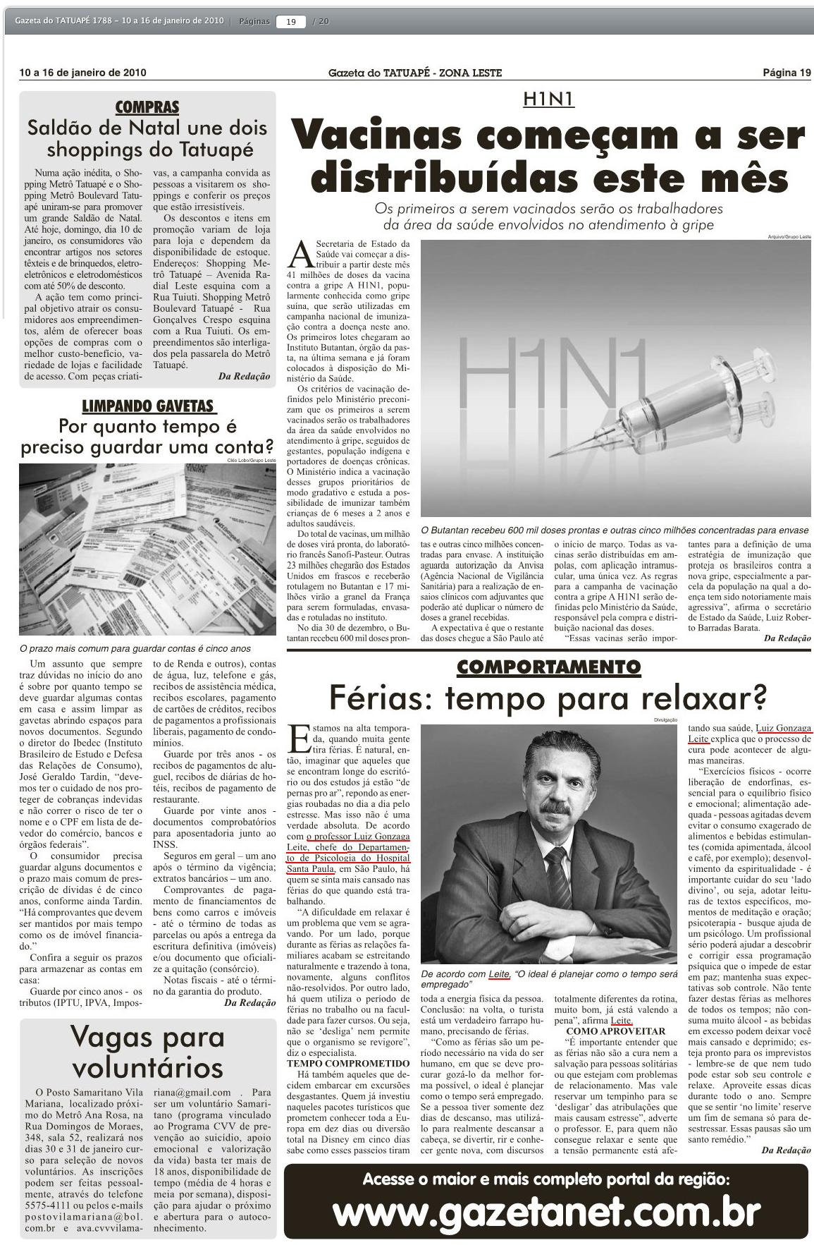 GAZETA DO TATUAPÉ/SP (16 Jan) - Férias: tempo para relaxar?