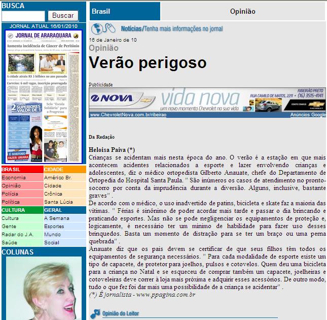 JORNAL DE ARARAQUARA/SP (16 Jan) - Verão perigoso
