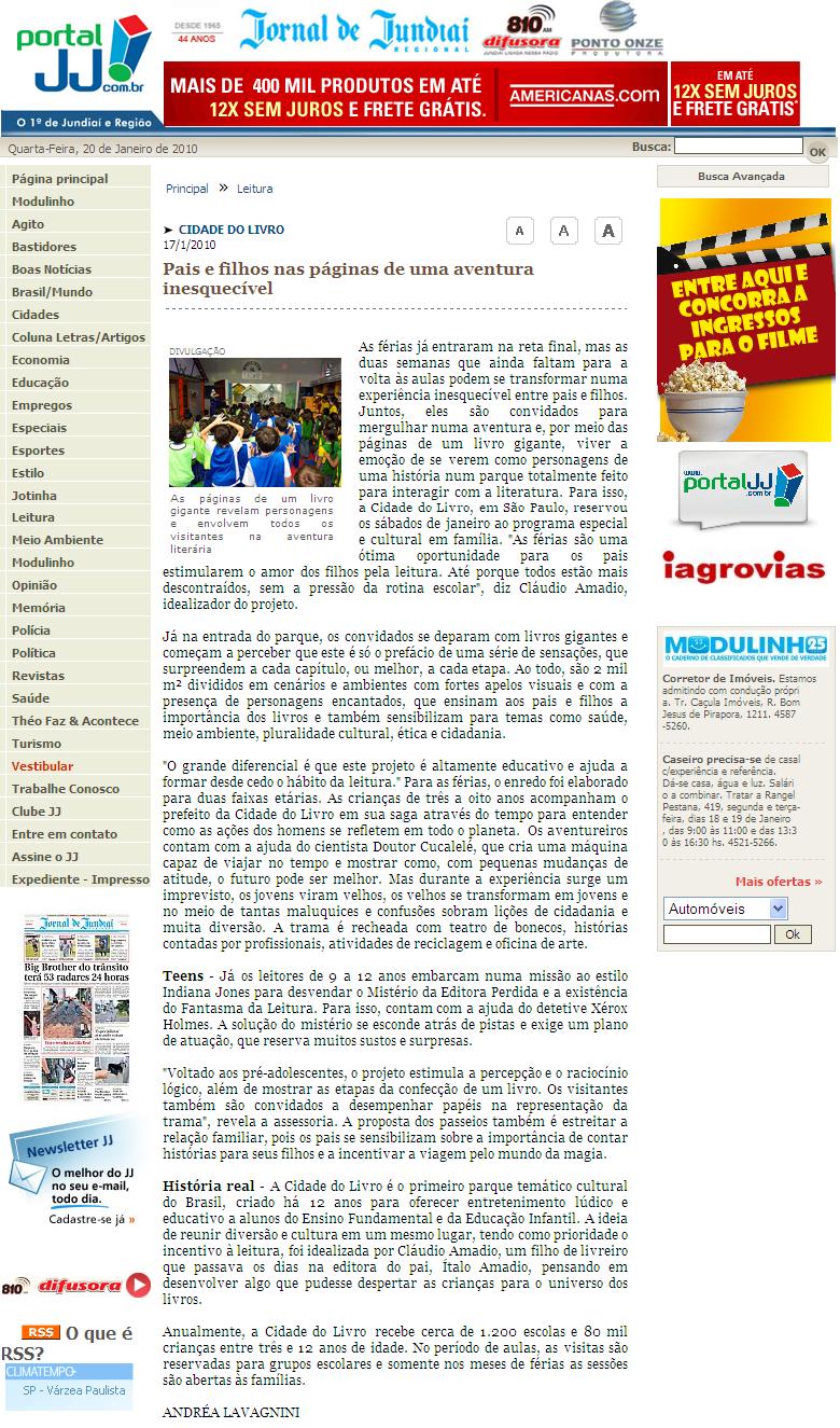 Clipping JORNAL DE JUNDIAÍ/SP (17 Jan) - Pais e filhos nas páginas de uma aventura inesquecível 21/01/2010