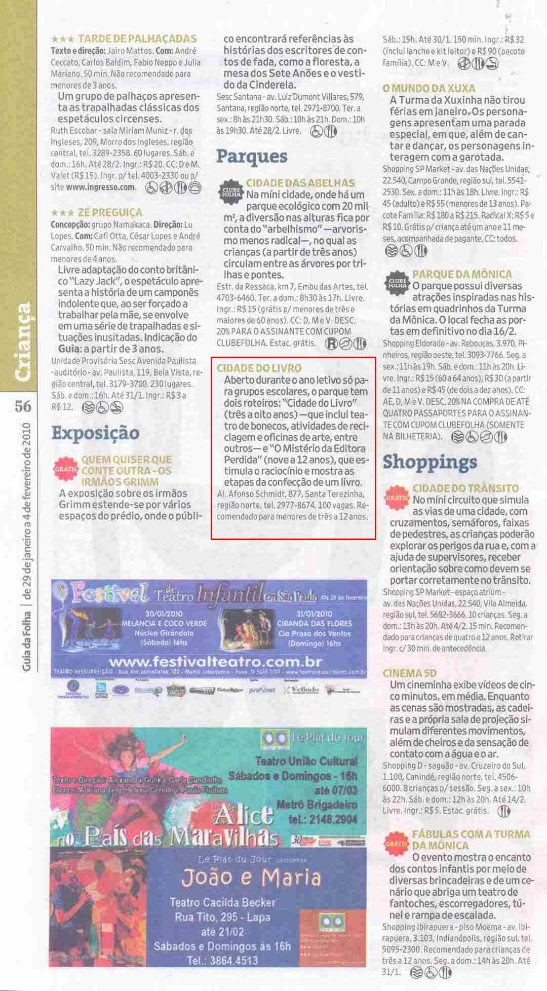 FOLHA DE S.PAULO (GUIA DA FOLHA) (29 Jan) - Cidade do Livro