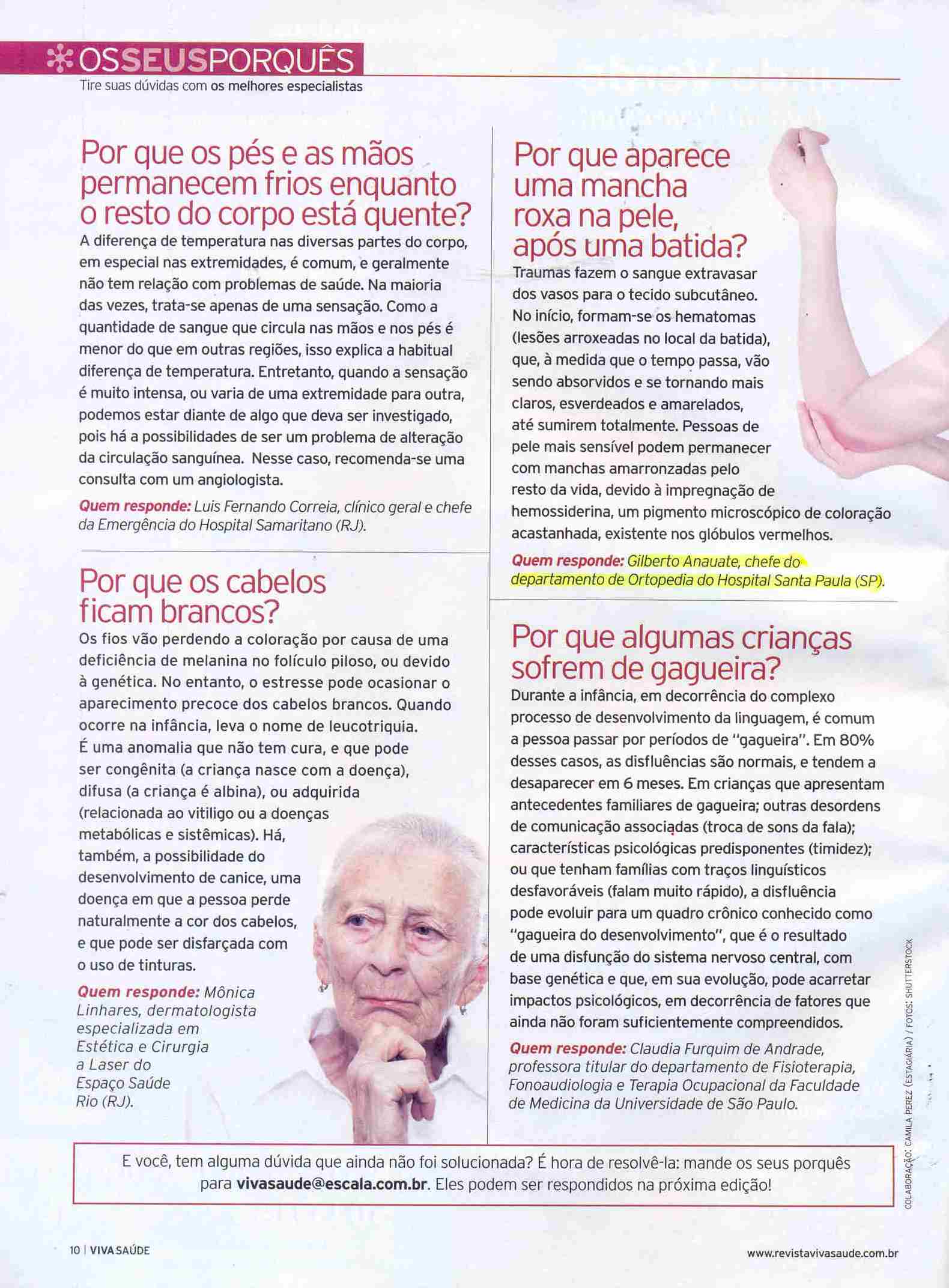 Clipping REVISTA VIVA SAÚDE (FEV) - Por que aparece uma mancha roxa na pele, após uma batida? 02/02/2010