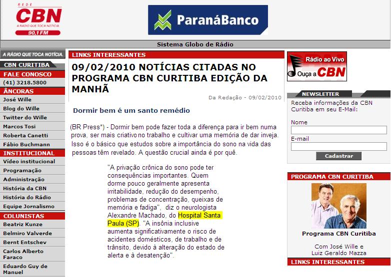 RÁDIO CBN FM 90,1 MHz (CURITIBA/PR) - Dormir bem é um santo remédio