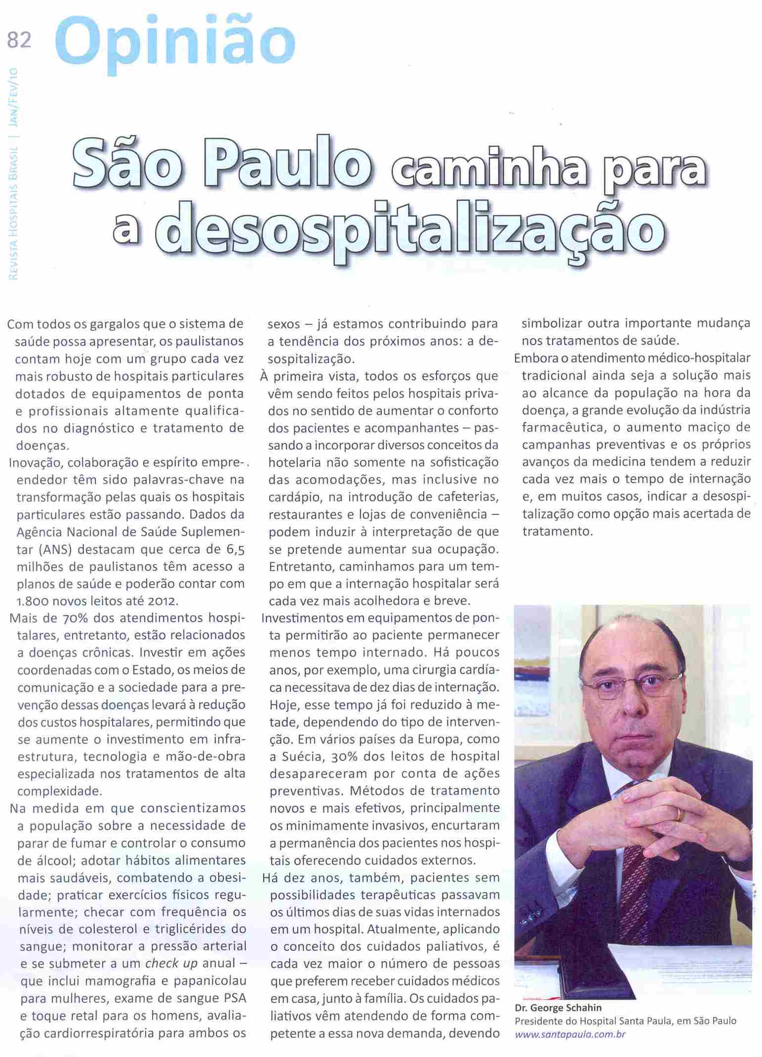 REVISTA HOSPITAIS BRASIL (FEV/MAR) - São Paulo caminha para a desospitalização