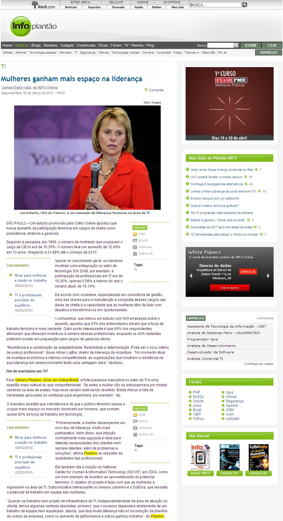 PORTAL INFO (ED. ABRIL) - Mulheres ganham mais espaço na liderança