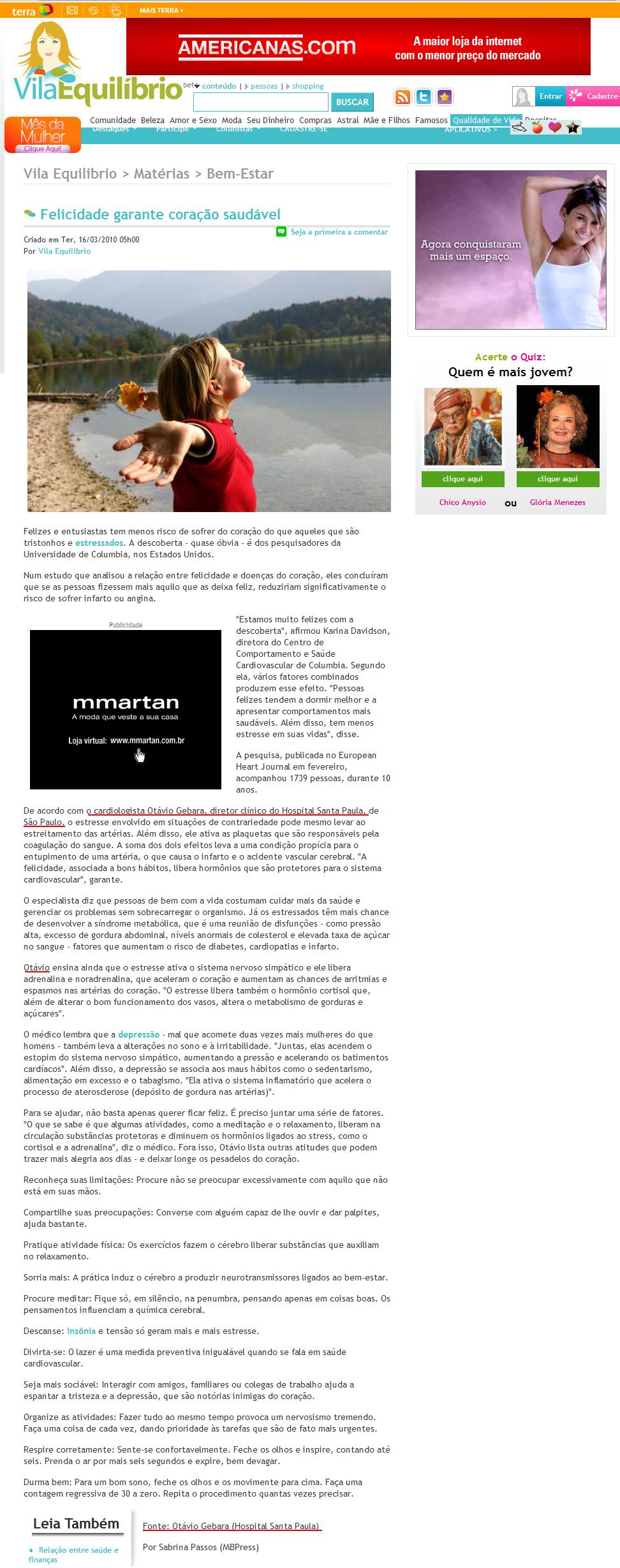PORTAL TERRA (VILA EQUILÍBRIO) - Felicidade garante coração saudável