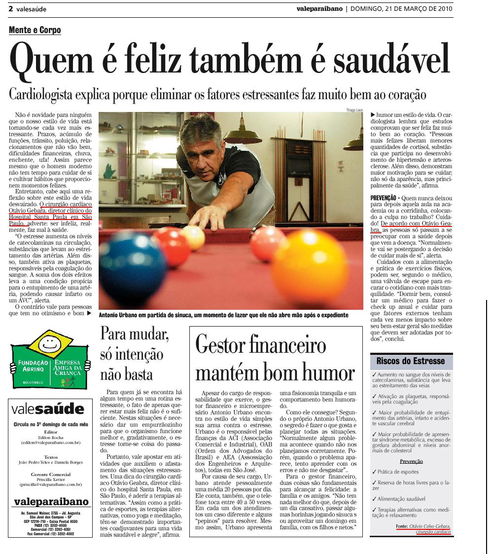 Clipping VALE PARAIBANO (SÃO JOSÉ DOS CAMPOS/SP) (21 MAR) - Quem é feliz também é saudável 23/03/2010
