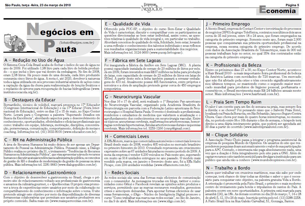 JORNAL EMPRESAS & NEGÓCIOS (23 MAR) - Neurocirurgia vascular