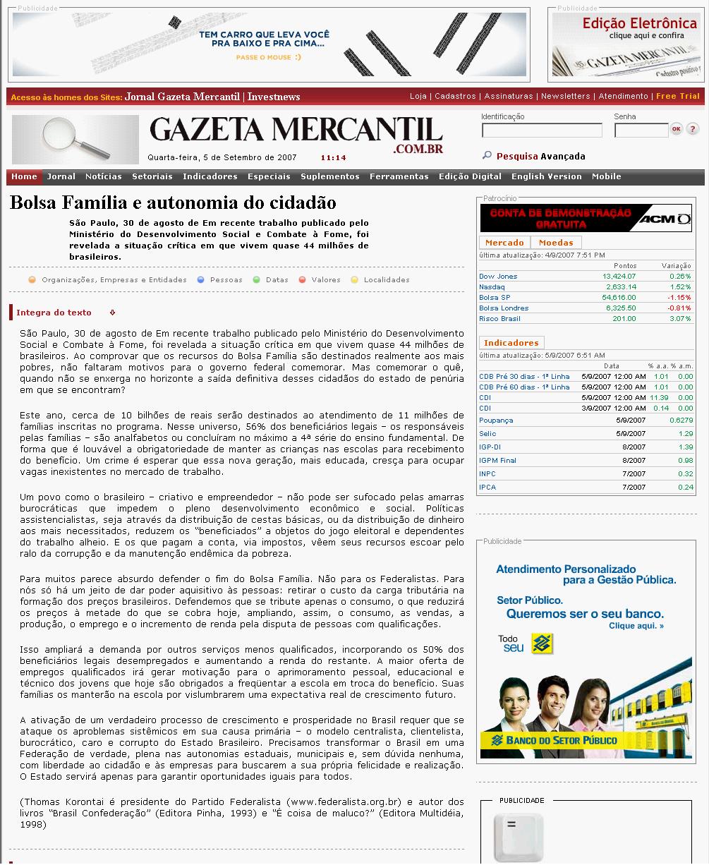 Gazeta Mercantil Online (30 Ago) - Partido Federalista