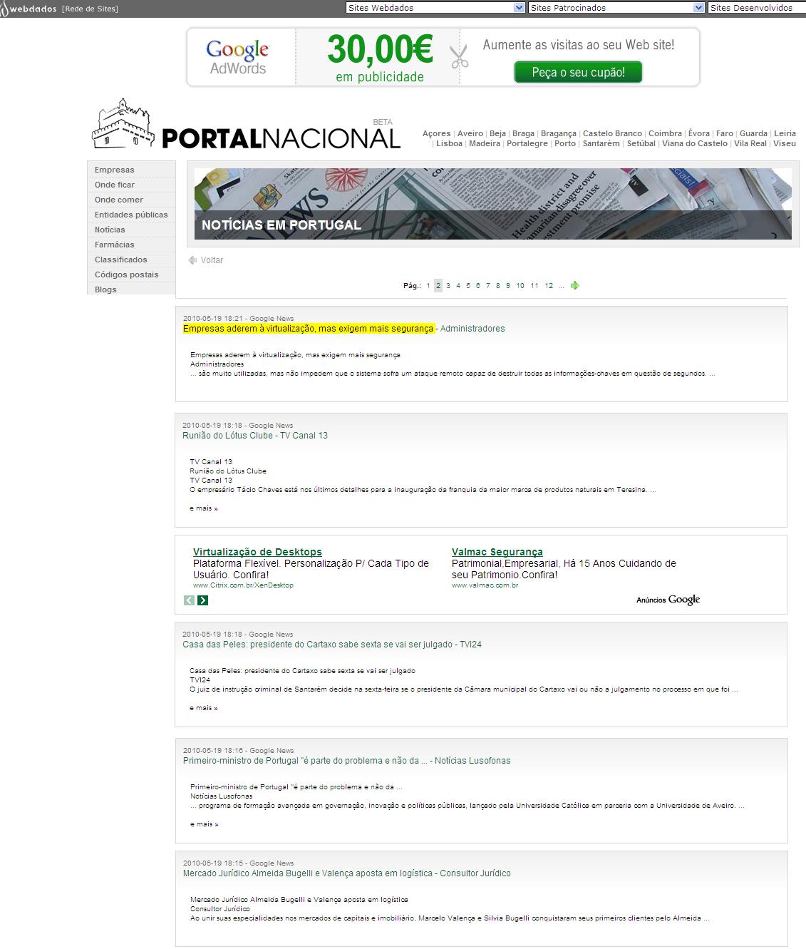 Clipping PORTAL NACIONAL DE PORTUGAL - Empresas aderem à virtualização, mas exigem mais segurança 19/05/2010